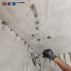 In dem Nebengebäude zum Haupthaus hatte der Eigentümer ein Problem mit eindringende Feuchtigkeit über die Mauer- Deckenfugen. Da darüber eine Terasse angelegt war und das ganze Gebäude in den Hang gebaut worden ist, kam das Aufgraben und Abdichten von Außen nicht infrage.